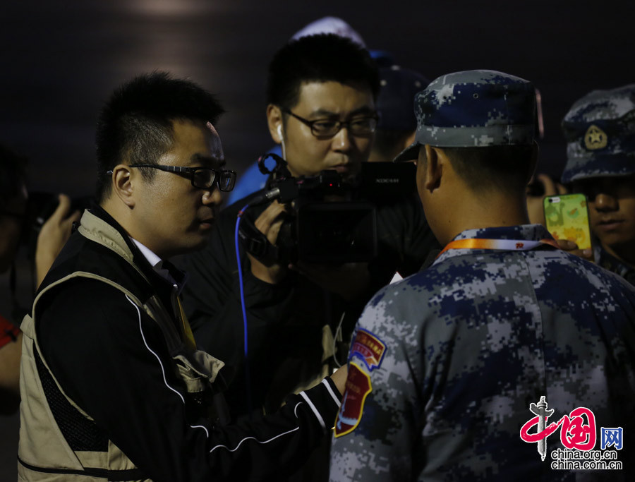 9月3日,中國人民抗日戰爭暨世界反法西斯戰爭勝利70周年紀念大會將在北京隆重舉行。圖為中國網記者齊凱、王一辰在活動現場采訪。中國網記者 楊佳攝影
