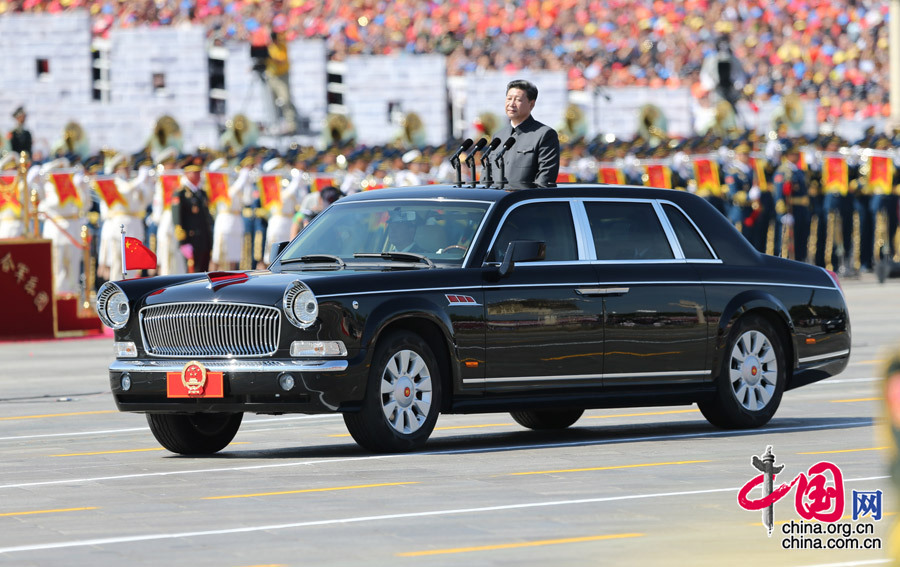 9月3日,高亢嘹亮的檢閱號角響起,中共中央總書記、國家主席、中央軍委主席習近平,乘紅旗牌檢閱車,開始檢閱受閱部隊。中國網(wǎng)記者 陳維松攝影