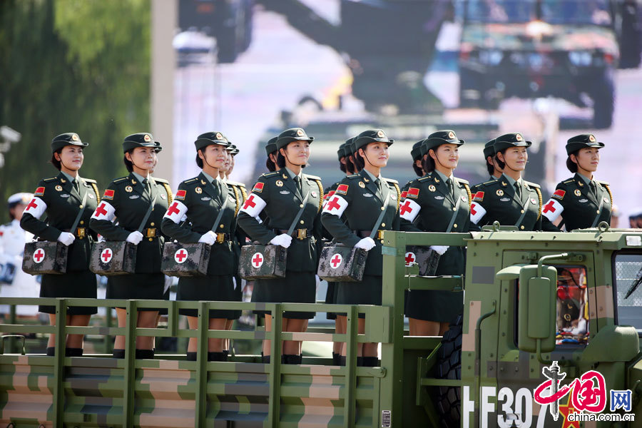 9月3日,中國(guó)人民抗日戰(zhàn)爭(zhēng)暨世界反法西斯戰(zhàn)爭(zhēng)勝利70周年紀(jì)念大會(huì)在北京隆重舉行。白求恩醫(yī)療方隊(duì)通過(guò)天安門(mén)廣場(chǎng)接受檢閱。中國(guó)網(wǎng)鄭亮攝影