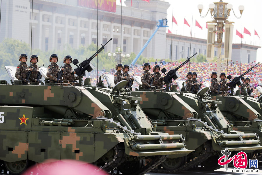 9月3日,中國人民抗日戰爭暨世界反法西斯戰爭勝利70周年紀念大會在北京隆重舉行。裝備保障方隊通過天安門廣場接受檢閱。中國網楊佳攝影