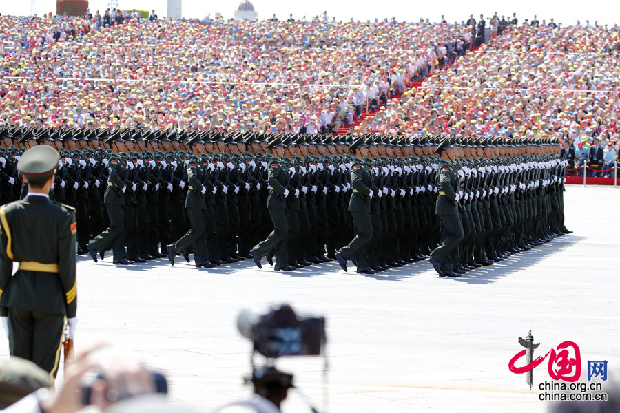 9月3日,中國人民抗日戰(zhàn)爭暨世界反法西斯戰(zhàn)爭勝利70周年紀(jì)念大會在北京隆重舉行。這是“東北抗聯(lián)”英模部隊方隊。 中國網(wǎng)記者 楊佳攝影
