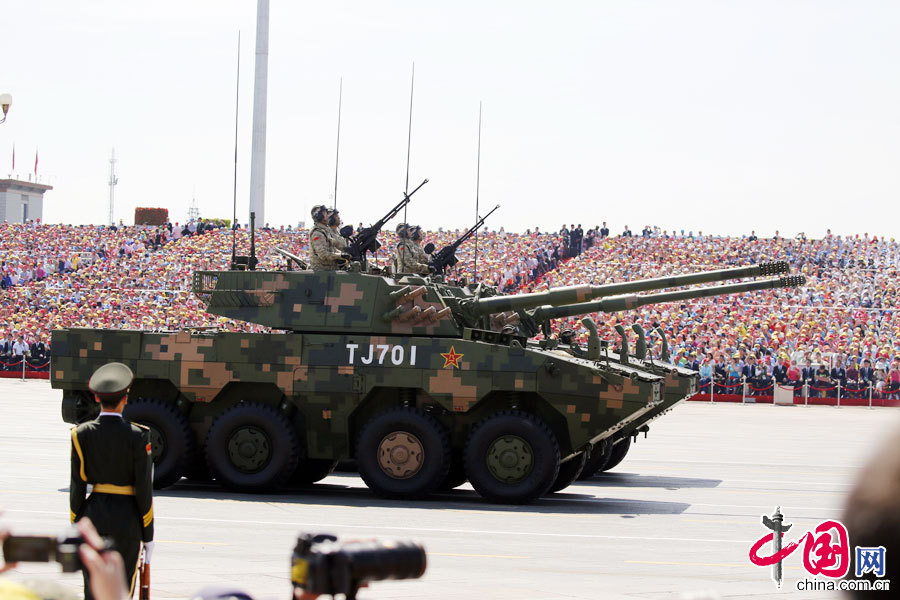 9月3日,中國人民抗日戰爭暨世界反法西斯戰爭勝利70周年紀念大會在北京隆重舉行。輪式裝甲突擊車方隊接受檢閱。