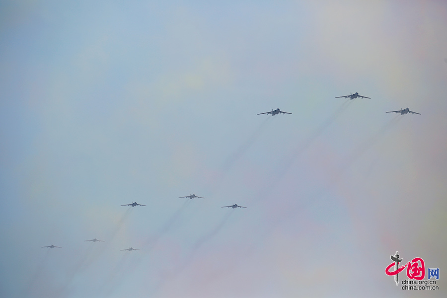 9月3日,中國人民抗日戰爭暨世界反法西斯戰爭勝利70周年紀念大會在北京隆重舉行。圖為轟炸機梯隊接受檢閱。中國網記者 楊佳 攝