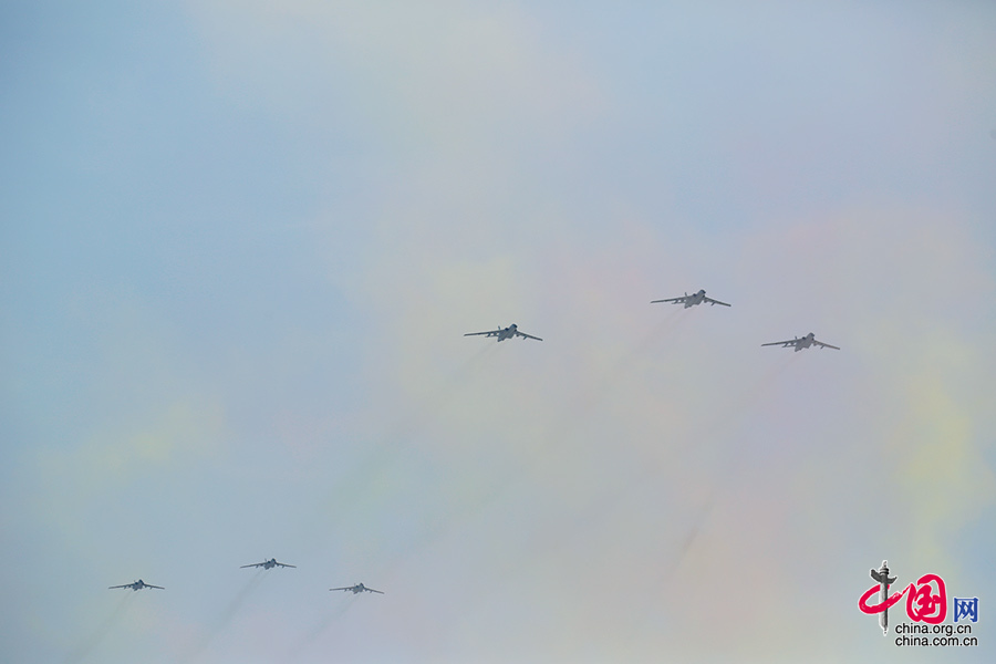 9月3日,中國人民抗日戰爭暨世界反法西斯戰爭勝利70周年紀念大會在北京隆重舉行。圖為轟炸機梯隊接受檢閱。中國網記者 楊佳 攝